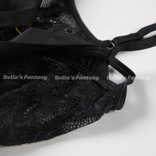 Bella's Fantasy Butterfly Open Bow Lingerie Crotchless Bodysuit Black Size M
