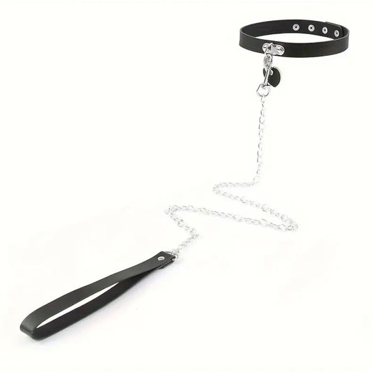 Bella's Fantasy Gothic Bondage Heart Pendant PU Leather Necklace Collar Adjustable Choker one size